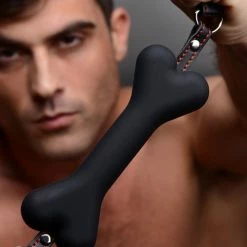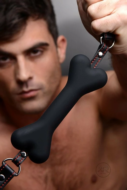 Give your dog a bone! Good dog or bad dog, this premium silicone and phthalate-free bit gag will keep your puppy quiet while you play with them. The soft straps make this a comfortable and sensual gag for your partner to wear during your most deviant scenes. The collar is adjustable to fit little dogs and big dogs. Stitched in red and firmly riveted, this puppy play toy is durable for many nights and days of extreme pleasure!