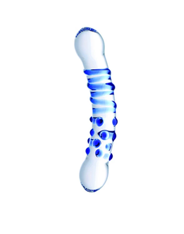 Create a rapturous evening with a gorgeous glass dildo that is double-ended for your endless pleasure! Experience both sensual textures when you fuck yourself with this incredible erotic stimulator. Two round, bulbous heads allow you to choose which smooth end you would like to slip into your ravenous little hole, before feeling the delicious delights of the raised swirls or the elevated nubs. Slightly curved, this device is perfect for G-spot or P-spot, rocking it against those sensitive spots that will make your toes curl. Great for temperature play, you can heat or cool this luxurious material in hot or cold water for a unique experience that will transport you to erotic heights you’ve never known. The non-porous glass is easy to clean and sterilize, shatter resistant, non-allergenic, and compatible with any lube of your choosing.