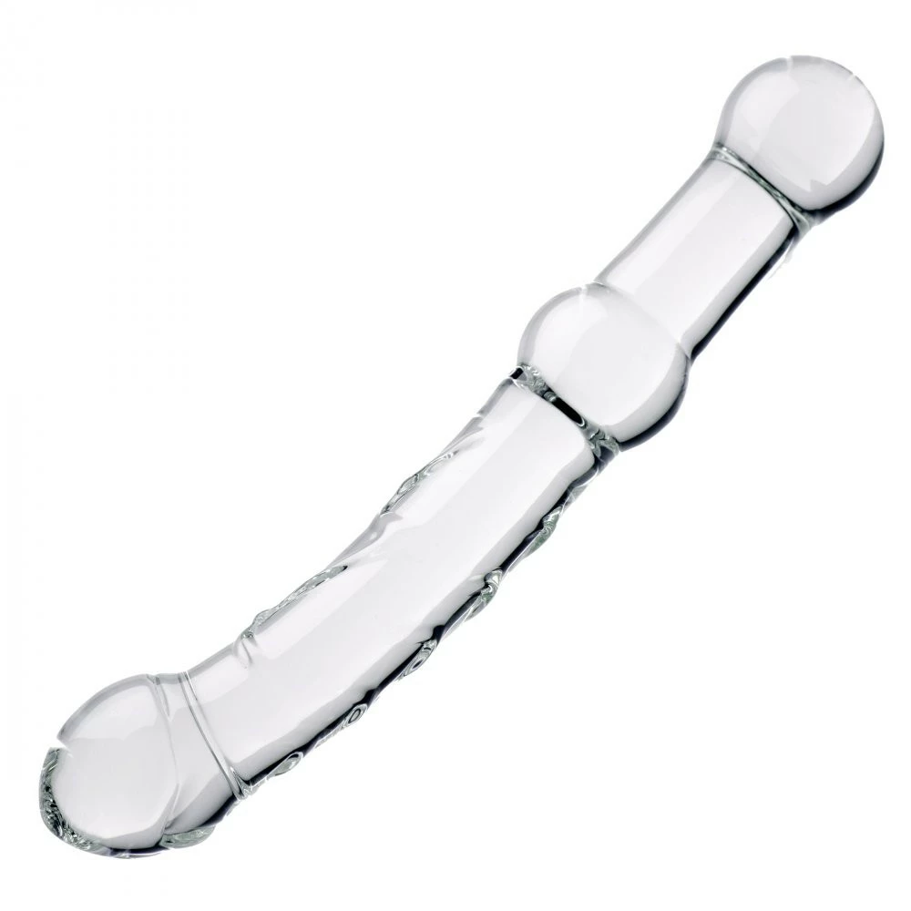 Expertly crafted for sublime pleasure, this beautiful glass dildo is studded with texture accents along the shaft for enhanced stimulation. Featuring a smooth tapered cock head and a delicate curve to the slim shaft for an unsurpassed orgasmic experience.