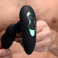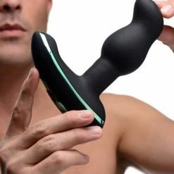 Remote controlled for naughty fun with a partner! Designed to fill your ass with extreme ecstasy, this massager has a prominent bulb and is curved at the tip to target your prostate. This is also the first prostate stimulator, in the world, with rotating beads. Push the smooth, seamless shaft up your hole until you bottom out. Not only will you be able to play with 3 powerful intensities and 4 pulsating patterns of vibration, but you will also experience a unique pleasure at the tight ring of your opening! Savor 3 speeds of stimulation as beads rotate under the surface of the stem. Furthermore, the extended base curves upwards to buzz against your taint for even more sensation. Made of premium silicone, this prostate vibe is non-porous and phthalate free. Avoid use with silicone lubricants. This rechargeable tool is waterproof and can easily be cleaned with mild soap and warm water.