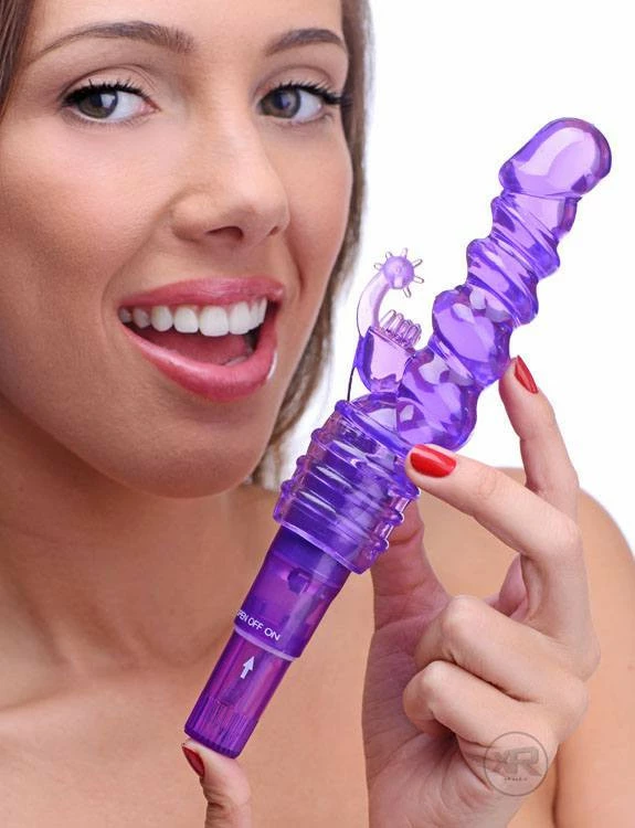 Experience the intense power of a pocket rocket in the form of a rabbit-style vibrator! Use this toy with or without the rabbit attachment for vibration that will blow your mind! The dual stimulator is small for those that prefer petite insertions, but heavily textured to give you all new sensations inside and outside your pussy! Big on power but perfectly sized for travel, you can bring orgasmic bliss with you anywhere you go. Just choose how you want to get off, twist the base to turn on the incredible vibration, and get ready for lift off!