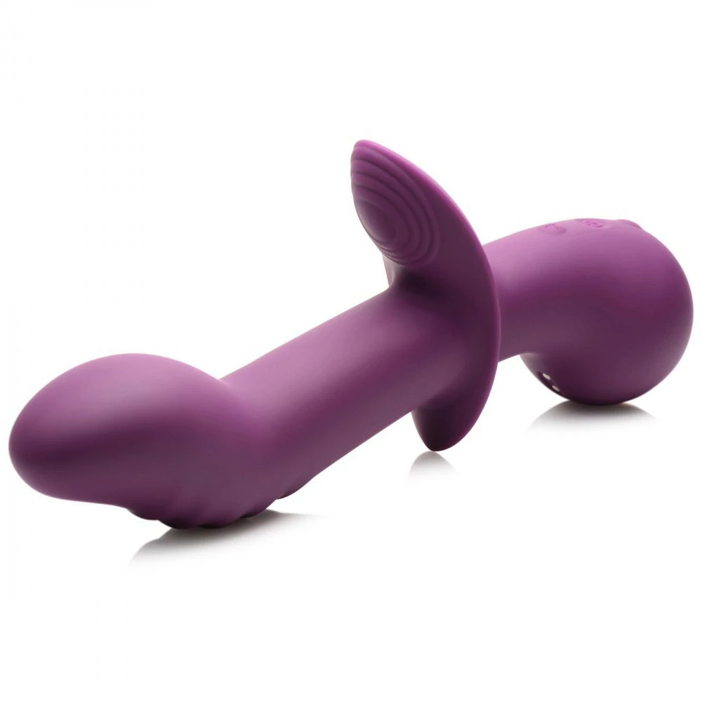 Indulge in a deeply penetrative vibrator. Designed with your anatomy in mind, the end of this silky smooth, plush silicone shaft is a curved, round head. Use it to stimulate your G-spot (or P-spot) while deeply penetrating your hungry hole. Enjoy 5 speeds and 5 patterns of deep, rumbling vibration. Above the base is a ribbed, flexible, flange that can be pressed against your clit (or perineum) for extra stimulating pleasure. Hold onto the toy using the round handle at the base. Made of premium grade silicone, it is phthalate-free and body-safe when used with water-based lubricants. Take it in the shower, too! It has a waterproof rating of IPX6 meaning it can withstand high powered jet-streams. After use, wash with warm water and mild soap, then spray with a toy cleaner and wipe dry. Store separate from other silicone toys. Recharge using the USB cable provided.