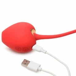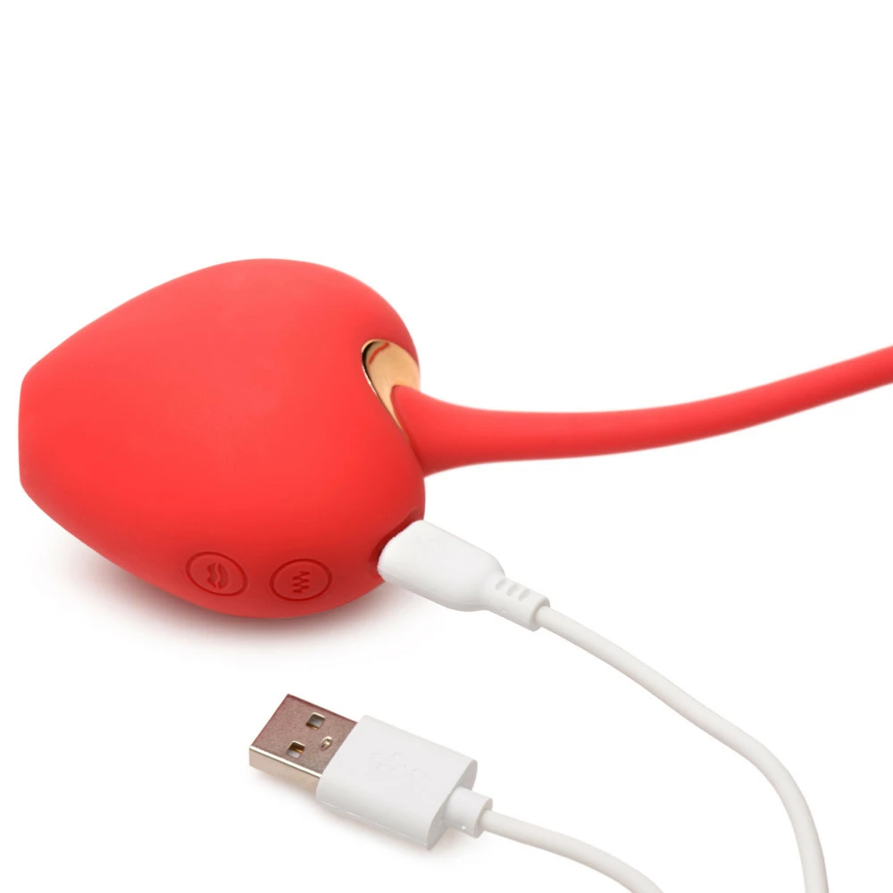 Satisfy your desires with this heart-shaped clit sucker and powerful egg vibrator! Enjoy dual stimulation with lots of flexibility with a toy that gives you room to maneuver! Made of premium, phthalate-free silicone, the silky smooth texture is sensual and plush against your skin. The clit sucker and vibrating egg are connected by a long, silicone cord so you can adjust the placement for any angle and even share it with your partner! The clit-sucking heart has a round hole at the base that has air-stim technology. Enjoy 3 speeds and 2 patterns of powerful suction that teases and pleases your clit! At the end of the silicone cord is a slim, hour-glass shaped, vibrating egg that has textured grooves for extra pleasure! It can be inserted as you use the clit-sucking heart at the other end of the cord to stimulate yourself at the same time! Enjoy 3 speeds and 7 patterns of powerful vibration that buzz inside you! Use the buttons on the side of the heart to change settings as you play. Bring your toy into the bathtub or shower, too! It has a waterproof rating of IPX7! To clean, wash with warm water and mild soap, then rinse off and spray with a toy cleaner before wiping dry and storing in a cool, dark place. Recharge between uses with the USB charging cable provided.