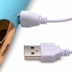 This delightful rabbit vibe is your ticket to pleasure! The bunny arms form 4 points of contact that deliver delicious vibration right to your eager clit! The powerful vibe offers 3 speeds and 7b patterns to choose from, so enjoy the variations on pleasure! The textured shaft inserts inside you. Enjoy the textured ridges along the shaft that massage the G-spot with each stroke and thrust. Made of body-safe, phthalate-free silicone, it can be used with any water based lubricant. Treated with IP5X waterproofing, the toy can be exposed to low pressure water jets or your own personal squirt and still function well! After use, recharge using the USB cable included.