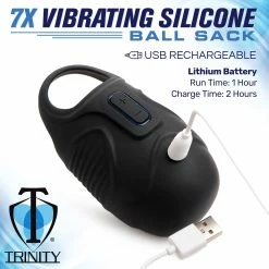 Add something extra to your sexy session with this Vibrating Silicone Testicle Massager! For those who enjoy sensation on their balls, take it a step further and feel the rumbling vibration through the testes as you stroke, thrust, fuck or get sucked off! Tease yourself by turning on the vibrations and enjoy 3 speeds and 4 patterns of powerful vibes. Use a water-based lubricant for best results and enjoy the slippery feeling of sensation enhancing stimulation from this toy! Enjoy the smooth, silky, phthalate-free silicone against your sensitive nuts. After use, simply wash the toy in warm water and mild soap, then spray with a toy cleaner before wiping dry. Recharge using the USB cable provided.