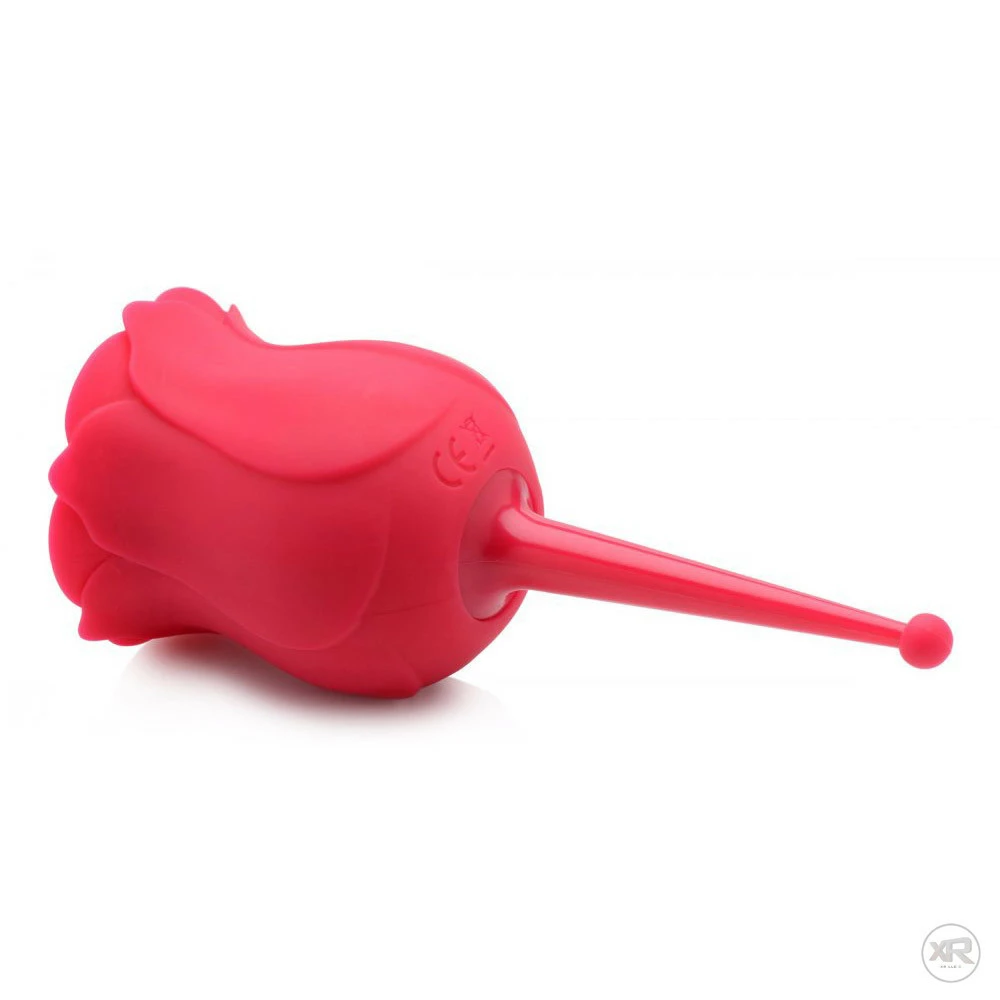 Enjoy the rose and the stem of this bountiful bud! The air stimulation comes in 5 different modes while the vibration can be enjoyed via 3 different speeds and 4 different patterns. The velvety soft and plus silicone petals envelop the area being gently suctioned. The firm stem sends pinpointed vibration to targeted, sensitive areas.