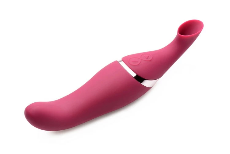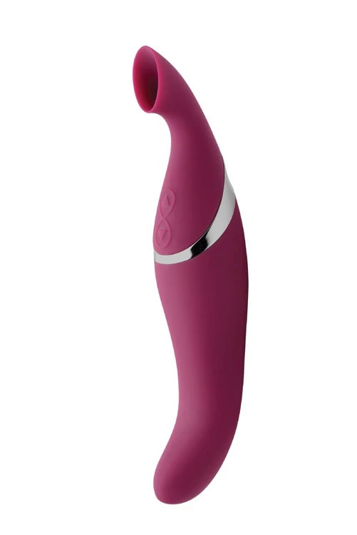 You’ve never felt anything like this before! Unlike similar competitors on the market, this female pleasure tool will actually suck on your clit! Developed with orgasmic suction technology, the Shegasm Intense features an oral sex simulator on one end, and a G-spot vibrator on the other. The vibrating end is silky-smooth for the utmost comfort during insertion. A dramatic curve ensures that it puts pressure on the right spot to work your body towards a G-spot orgasm, and possibly even squirting! Experiment with 12 speeds and patterns of buzzing bliss to find what works best for you. Turn the vibe around to experience the revolutionary suction feature! The small cup will surround your clit and apply incredible suction pressure, with an additional 12 modes for you to play with. You won’t believe what this device is capable of until you feel it for yourself! Made of high-grade silicone, it is non-porous and phthalate-free. Not recommended for use with silicone lubricants. Sanitize after use with warm water and mild soap.