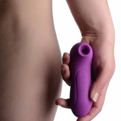 Slip this mini Shagasm into your purse for orgasms on-the-go! This petite pleaser uses pressure technology to simulate a sucking sensation, encircling your clit and targeting it for intense stimulation. Use the buttons to increase and decrease pressurized vibration, with 10 levels to choose from as your clit is encapsulated within the silicone tip of the Shegasm Petite, receiving better attention than you ever got from oral sex… and it doesn’t quit! Relish the delightful thrum as it reverberates around your clit, unlike anything you’ve ever felt before! The wireless, rechargeable Shegasm Petite is small enough to fit in the palm of your hand and take wherever you go, and you won’t ever want to leave home without it! Clean after use with mild soap or toy cleaner and avoid use with silicone lubricants.