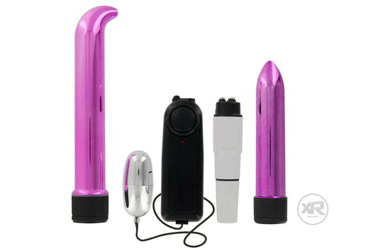 The kit includes a G-Spot vibrator, slim vibrator, mini massager (with massaging heads) and egg vibrator. Use each of these items individually (or in combinations on various parts of the body) to create heightened pleasure that can bring about mind-blowing orgasms.