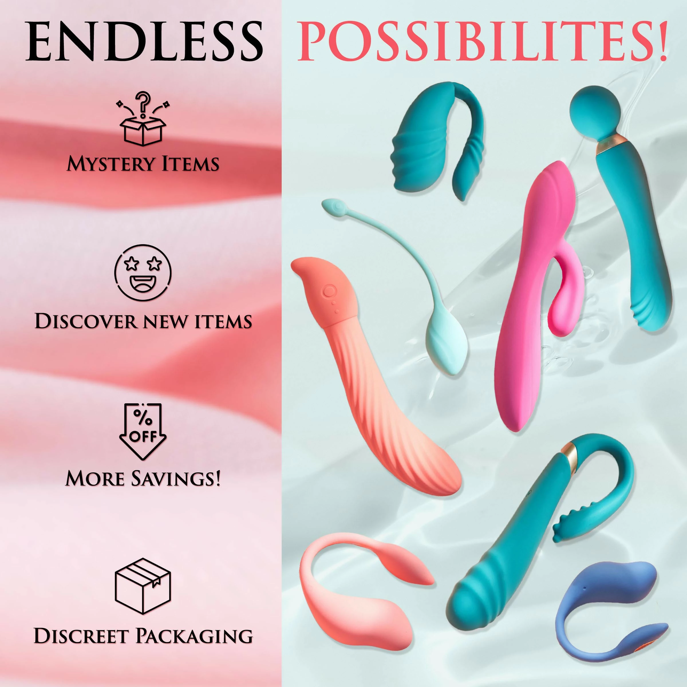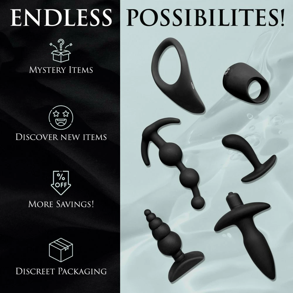 Discover something new by letting us choose your toys for you! In these gift boxes, you can choose the perfect bang for your buck (so you can bang yourself or your partner with new toys!). Take away the stress of choosing the perfect gift or toy and just have some fun with it by choosing a box based on your budget or how many toys you’d like! Pick between a range of $40-$160 in value and only pay between $19.95-$79.95 for all of it! You can have 2, 3, 4, or 6 items in each box! Depending on the time of month and what’s available in our warehouses, you’ll get a different mix each time! Try it once and, if you like it, buy a new one each month!