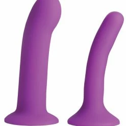 Looking for a pair of dildos to strap into your harness for a night of devious double penetration? Or do you want to start small and work your way up to a larger insertion? Great for your pussy, ass, or both, these shafts are slightly curved to deliver G-spot or P-spot stimulation with every thrust! Compatible with most harnesses, you can use them with a partner or apply their suction cup bases to a smooth, hard surface for solo play or to put on a show! Slick and smooth, penetration is easy and comfortable with this pair. These firm, yet flexible dildos are made of high-grade silicone for the ultimate body-friendly experience. Pthalate-free and non-porous, this material sanitizes easily and effectively with mild soap and warm water. Avoid use with silicone lubricant.