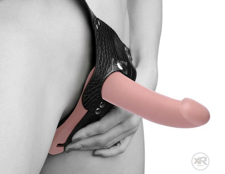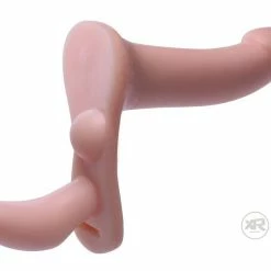 Both partners can experience the pleasure of penetration with this innovative strap on harness set. Perfect for two women or pegging, the smaller dildo slips easily and comfortably into the wearer while a small nub stimulates her clit. The larger dildo is slim and sleek for comfortable anal or vaginal penetration. The sexy and adjustable harness keeps the dildo in place for even your most vigorous thrusting action!