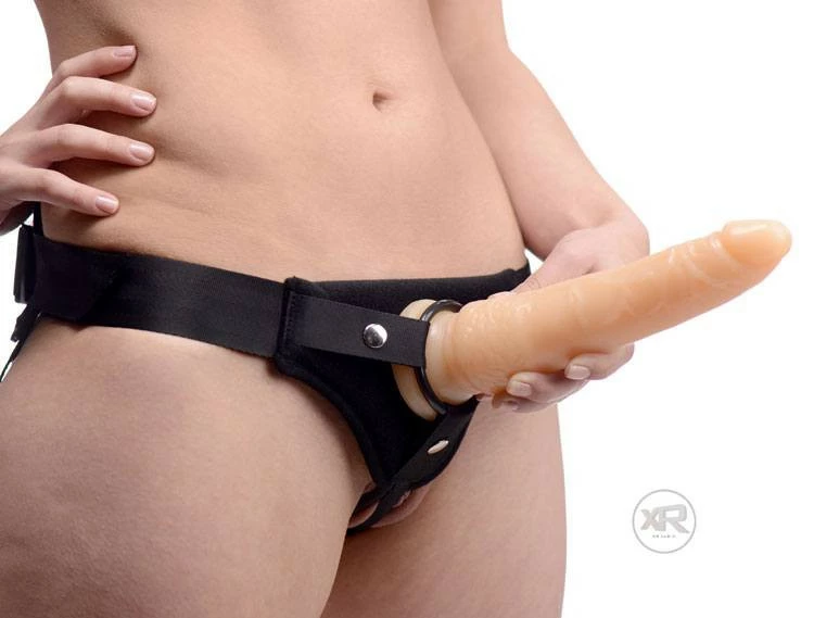 The harness includes three different O-rings, each of a different size, to accommodate your favorite dildo (dildo not included). These rings are made of plastic for a more secure fit.