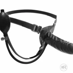 It’s one thing to pound away at your partner, with a strap-on. It’s another when you’re able to take the dildo of that strap-on and inflate it during use. This unique strap-on system features a dildo with a medical-style hand pump. So grind the dildo deep into your partner, and suddenly squeeze the pump. The dildo will inflate and expand your partner. When you’re all done, use the easy release valve to deflate the dildo quickly and easily. The harness has a T-back style and is flexible for comfort.