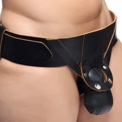 For some using a strap-on harness can easily include the sensation of having the balls slap against the person while having sex. For those who don’t have testicles, this padded leather strap-on harness fits the bill. The harness features a padded pouch that holds your favorite flared base dildo. The pouch also has a hanging sack to simulate testicles. There are two straps that run between the legs and behind the thighs, plus the waist and leg straps are fully adjustable, up to 41.5 inches.