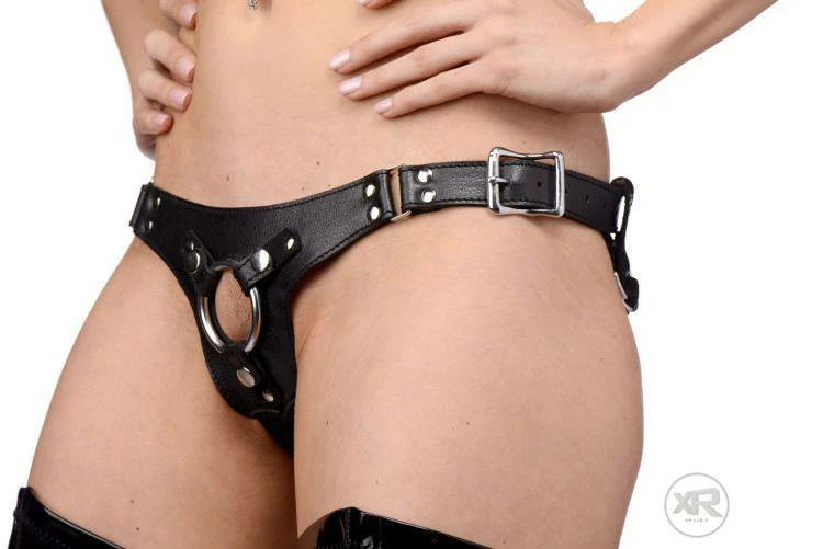 Feel the power and penetration with the Dominance Leather Strap-On Harness