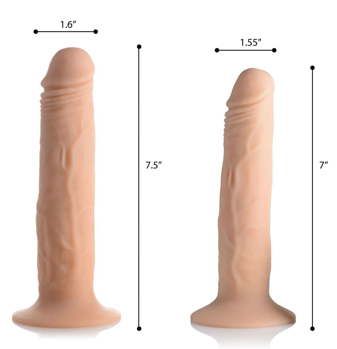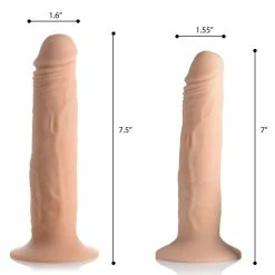 - Measurements: Medium dildo is 7.75 inches in total length, 7.25 inches insertable length, 1.3 inches at narrowest diameter, 1.7 inches at widest diameter.