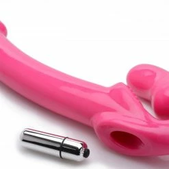 Slip the included bullet vibe into the hollow cavity found at the base of this strap-on and add intense vibes to your thrusts! Choose from 3 speeds and 4 patterns of buzzing to suit your playstyle – flip through all functions with the power button and find what works for you and your partner with ease.