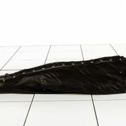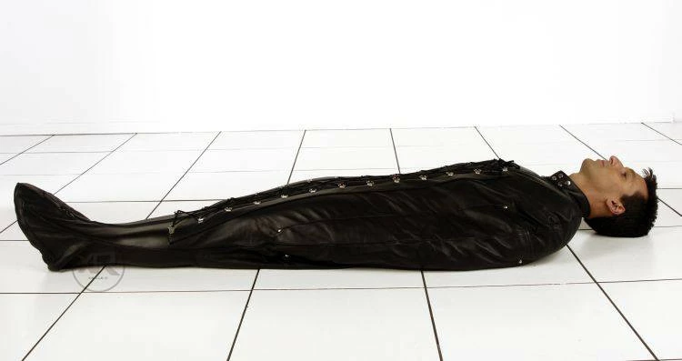 Specifications: The sleepsack is made of high quality leather. It closes using a dual zipper and buckle tie system. The collar is fastened with snaps.