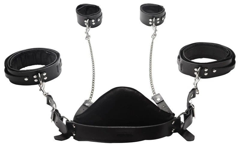 Specifications: The sling and stirrups are made of high quality leather. The thigh cuffs measure 27.5″ in length and 2″ in width. The ankle cuffs measure 14.5″ in length and 2.25″ in width. The head and neck padding measures 11″ in width and 6″ in height.