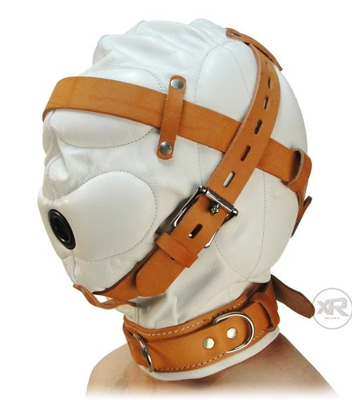 Utilizing a color scheme, reminiscent of institutions, this hood allows you to immerse your partner in total sensory deprivation. The hood features internal pads over the ears, eyes and mouth to block out sound and light. Use the adjustable sizing straps (with lockable buckles) to create a comfortable, but firm fit.