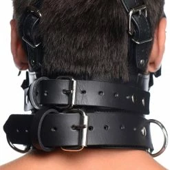 A hardcore head harness with a detachable gag and blindfold for interesting twists to your BDSM scenes. Made with durable leather and metal hardware for a genuine dungeon aesthetic and feel – each strap is fully adjustable so you can find the perfect fit at all points of contact. This versatile harness is best used in combination with other devious toys, but perfectly fine on its own for BDSM enthusiasts of all levels.