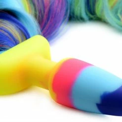 Transform your sub into an adorable Rainbow unicorn! Tame or be tamed as a mythical rainbow unicorn with this long, lavish, and colorful anal plug tail. The enthralling pattern combined with the long length allow eye catching braids and designs for you to play with and perfect for role playing in the bedroom.