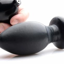 The Inflatable and Vibrating Butt Plug is a manageable size upon insertion but, once inside, it allows you to push your own limits by simply squeezing the bulb pump until you can’t take it anymore! This toy is an excellent way to train your partner for large insertions, as well. Turn on the vibrating feature of the plug and fill your slave’s ass while they beg you for more. The multiple speeds make it even more fun to stretch that ass from 1.5 inches to almost 3 inches in diameter.