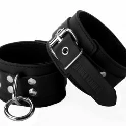 The feeling of suede along the wrist area can be very sensual. These wrist restraints are great for those wanting a heavy duty set of restraints and the comfort of suede lining. Durable, good looking and come with re-enforced sizing slots. Each cuff incorporates a heavy duty o-ring which makes a great point of attachment for securing to the bed, bondage furniture or to each other. The ankle cuffs are slightly longer than the wrist cuffs.