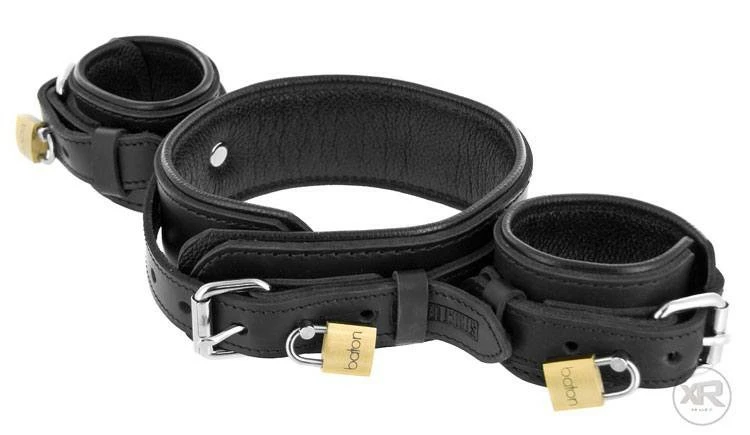 Enjoy the delicious sight of your helpless slave, bound and at your mercy in the Premium Leather Forced Orgasm Kit. The quality leather cuff and collar set keeps her wrists trapped to her neck, unable to stop the torrents of ecstasy that wash over her in
