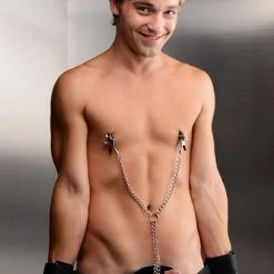 Keep your partner secure, and have your way with them, using this detained restraint system featuring nipple clamps
