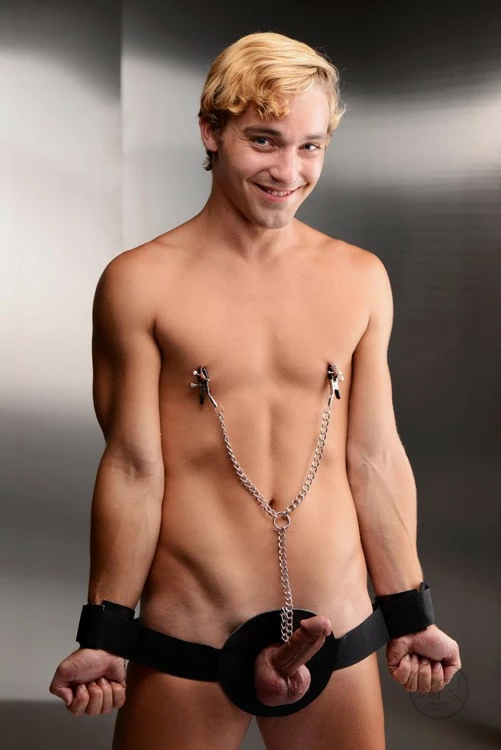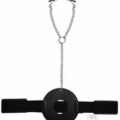 Secure your partner’s hand, to their side, using the attached cuffs. When in this position, you can feel free to have your way with them. The circular cock restraint, can also be used for women (using a dildo). The straps are heavy-duty, secure with Velcro closures, and highly adjustable. To amp up the use, attach the two bullnose nipple clamps to your partner and make their sudden movements have affect on their nipples.