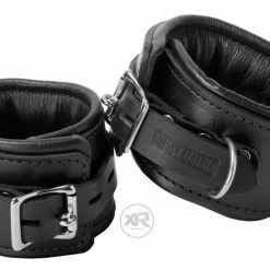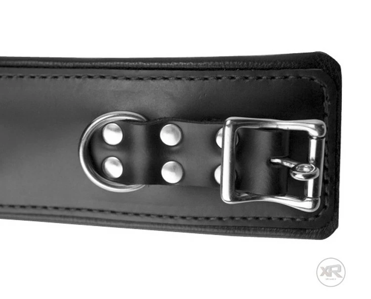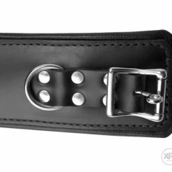 Want the ultimate in bondage comfort. Then get our latest version of our padded leather restraints. About 1/2 inch of leather padding is stitched into these cuffs to provide a secure but comfortable restraint. These premium restraints are 2 1/2 inches wide and reinforced with three layers of leather! This heavy duty design and locking buckles provide additional security and weigh in over 12 oz. Can be used with or without a lock. For our complete set of premium restraints, get the wrist as well as the ankle cuffs. Also, see our matching collar below.