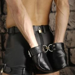 Keep their hands encased in these secure Strict Leather Fist Mitts. They will feel utterly helpless as they can’t grab any objects while in these restraints. Add to the humiliation and security to your next bondage scene by keeping those fingers encased in these mitts. Made of premium quality soft leather. You can use a pad lock to keep these mitts on until desired.
