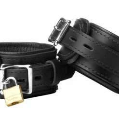 Featuring several bondage items, made from premium leather, this kit gives you everything you need to keep your partner under your control. You’ll get a leather collar, two wrist cuffs and two ankle cuffs. The cuffs have rolling buckle with lockable clasp. They are double-layered for a secure and durable fit. The D-rings lets you attach them to each other, bedposts, your choice.