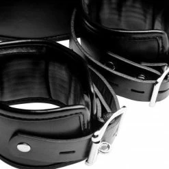 Show your sub who’s in control when you strap their wrists to their thighs! They won’t be able to cover themselves or resist your wandering hands as you play with their nipples, force them to give you oral, or have your way between their legs! Internal padding ensures that your fucktoy will be comfortable within their bonds. Adjustable straps accommodate most sizes of slaves. This unique cuff set includes 4 locking buckles so that your plaything has no hope for escape!