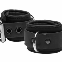 When your partner needs to be put in their place, these versatile, adjustable, Neoprene cuffs are ready for the job. The cuffs are padded for comfort, but also highly effective. You can attached the included chain and lock them for extra security.