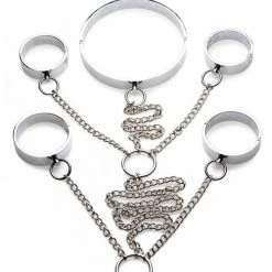 You’re a sophisticated and experienced Master or Mistress, searching for a cuff set that will meet your needs and match your aesthetic. Remind your slave that they are your most prized possession with these beautiful shackles, made of pristine stainless steel and gracefully thin for subtle perfection. Durable chains connect the collar and each cuff to restrict your lover’s mobility while you play with their body or they serve you. Finally, the unique locking mechanism does not distract from the seamless finish, utilizing a pin-in-hole system that is invisible to the naked eye. Attach other BDSM accessories to any of the 7 O-rings that adorn each manacle and connect the chains.