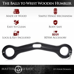 Predicament bondage at its simplest and finest. Whatever will your poor, pathetic plaything do while you tweak their nipples, spank their ass, and tease their cock? Answer: absolutely nothing! This humbler closes around their balls and wrists in front of the body, rendering them completely helpless to your every wicked desire. They won’t be able to move their hands to defend themselves, and any attempt will yank painfully on their scrotum! One end of the humbler has a hinge that allows it to smoothly open and close on your victim, while the other has a locking clasp so that they are entirely at your mercy…