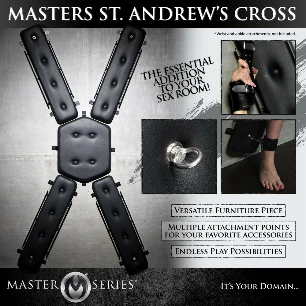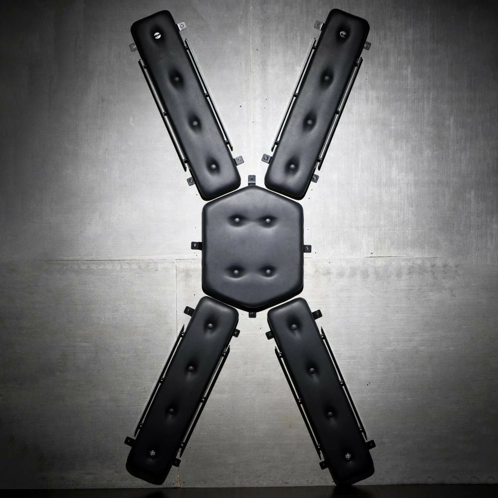 Let’s face it; St. Andrew’s Crosses take up a lot of space! So we’ve created one that lays flat against the wall so you can save on space and still have your very own, classic BDSM cross! Each of the 5 pieces of this cross are padded with plush, PVC leather covered cushions to improve comfort and support long-lasting scenes! The durable frame is made out of wood and iron so it can hold up during rough scenes. With such a compact cross, it’s perfect for smaller rooms and gives you more square footage to place other kinky pieces in the room along with the cross. It’s also great for rooms that have dual use such as a bedroom where you can hide a cross behind a curtain or dresser. Along the sides of each leg and arm pad are attachment points where you can attach wrist and ankle cuffs, rope, or other kink accessories! Get your submissive to stand upright for impact play whenever you like with this easy to install, easy to hide and compact St. Andrew’s Cross!