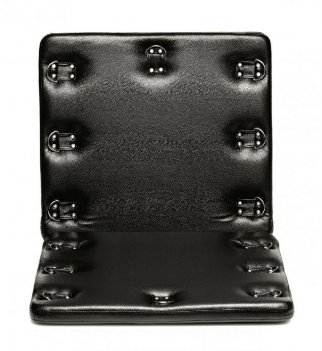 This portable BDSM furniture allows you to enhance your scenes at home or on-the-go! The convenient fold-up design is discreet to store, easy to use, and convenient to travel with! The soft cushioning of the board will keep your partner comfortable throughout even your longest scenes, whether they are on their knees, back, or something more creative! A total of 14 D-ring attachment points allow you to connect your favorite restraints, whether they are cuffs, a collar, chains, ropes, etc. Get wild with the Bondage Board’s extreme versatility during punishment and pleasure. When you’re done, the material can be wiped clean in a matter of seconds.