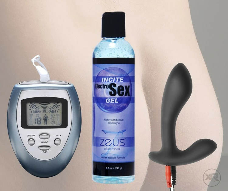 Electrify your Sex Life with this Estim Prostate Kit! Everything you need to stimulate your prostate with electricity is included in this set! Featuring the Zeus Palm Powerbox, you will be able to stick the silicone pads anywhere you want on your body, including your ass cheeks, thighs, or even your package! Control the electrical pulses and gentle currents that run through your body with 6 modes and multiple levels of intensity. Hook in the Bi-Polar Electro Prostate Stimulator to experience the incredible effects of electrosex inside your hole against your most sensitive part! Just use the Incite Electrosex Gel to lube up your prostate massager and slip it inside you, leads attached! The gel will amplify conductivity, ensuring that your taint and asshole get the maximum sensation of the mode you choose!