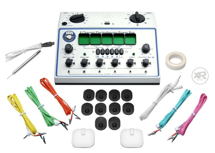 - Accessories: One acupoint detecting pen, six (6) sets of output wires, ten (10) rubber pieces, two (2) self-stick electric conductive rubber flat, a roll of tape, instruction manual and acupoint figure.